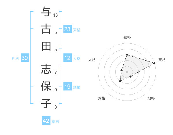 与古田 志保子さんを姓名の画数から五運を鑑定
