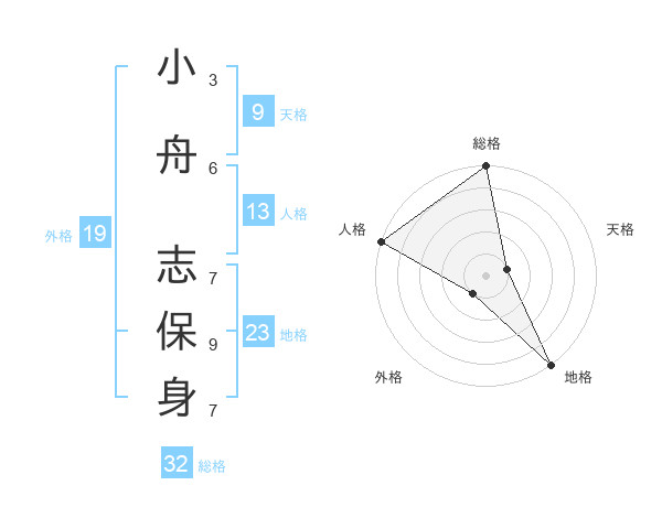 小舟 志保身さんの外格は19画の1点!