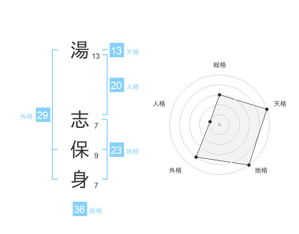 湯 志保身さんの天格は13画の5点!