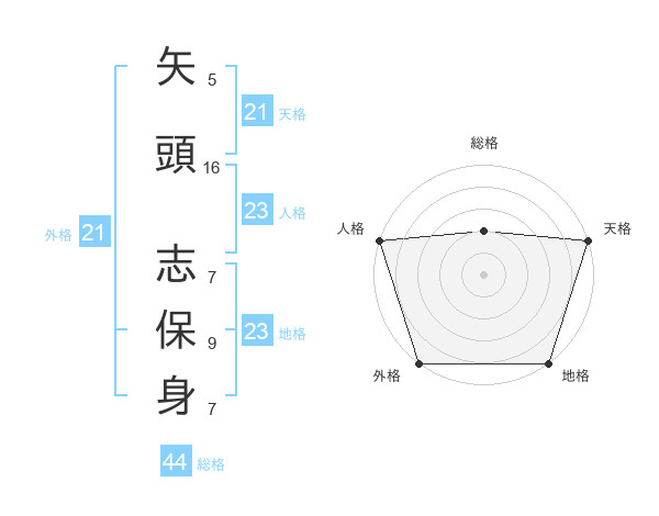 矢頭 志保身さんの天格は21画の5点!