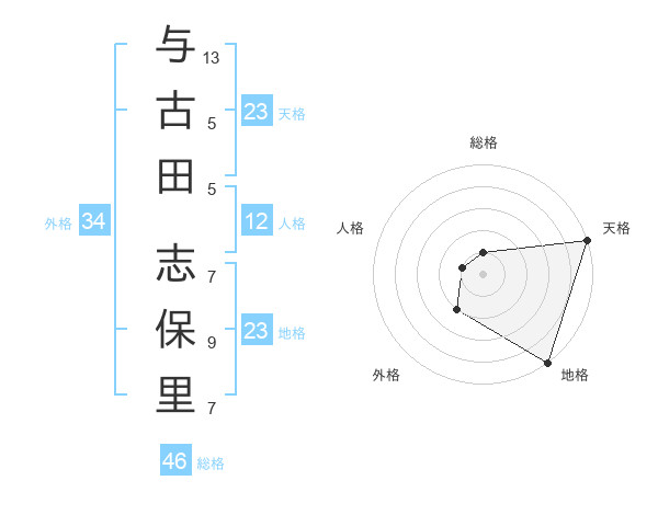 与古田 志保里さんの天格は23画の5点!