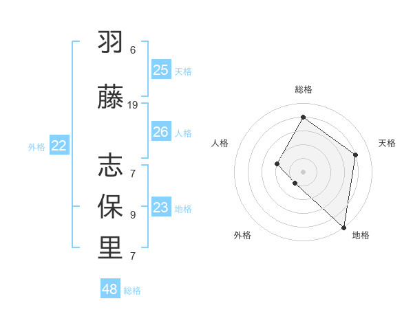 羽藤 志保里さんの天格は25画の4点!