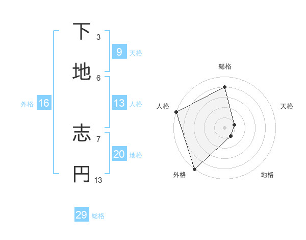 下地 志円さんの外格は16画の5点!
