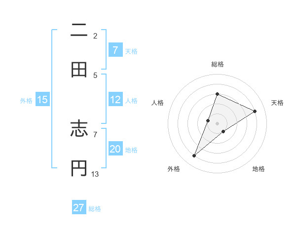 二田 志円さんの天格は7画の4点!