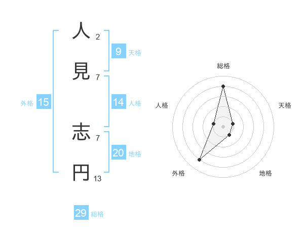 人見 志円さんの総格は29画の4点!