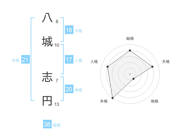 八城 志円さんの外格は21画の5点!