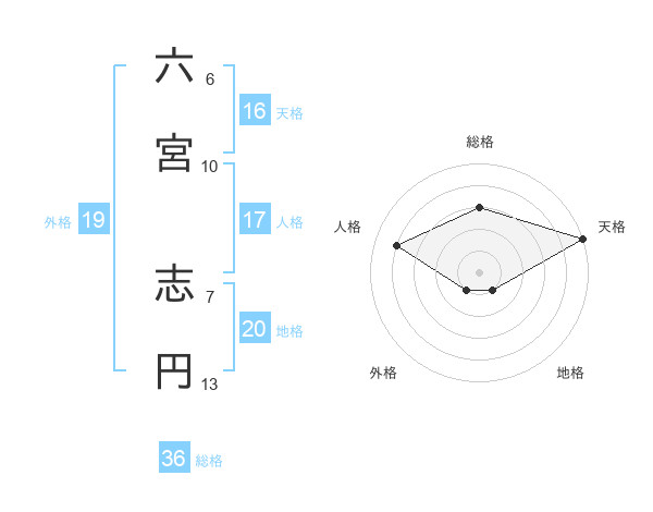 六宮 志円さんの天格は16画の5点!