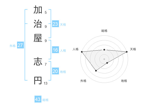 加治屋 志円さんの総格は43画の2点