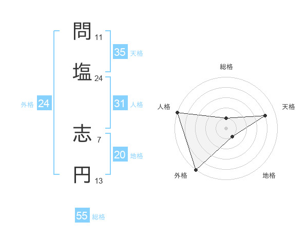 問塩 志円さんの外格は24画の5点!