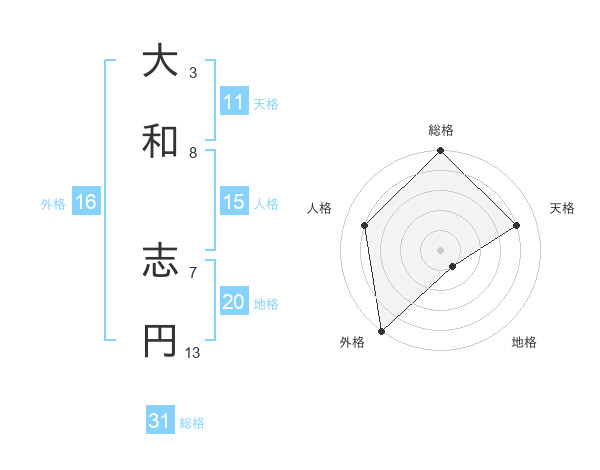 大和 志円さんの天格は11画の4点!