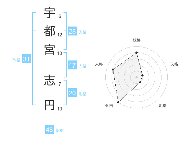 宇都宮 志円さんを姓名の画数から五運を鑑定