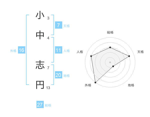 小中 志円さんの天格は7画の4点!