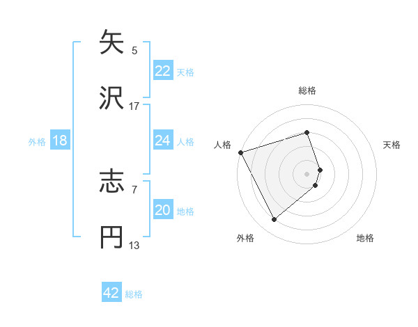 矢沢 志円さんを姓名の画数から五運を鑑定