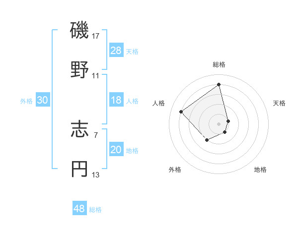 磯野 志円さんの総格は48画の4点!