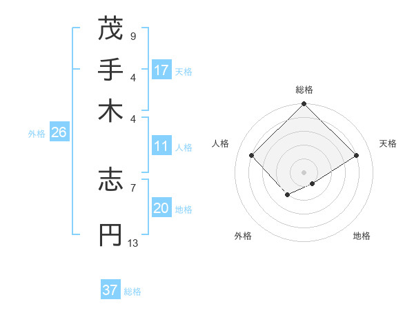 茂手木 志円さんを姓名の画数から五運を鑑定
