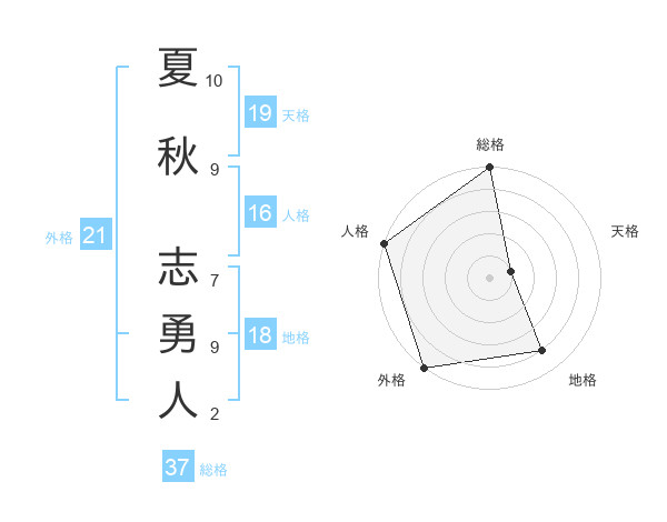 夏秋 志勇人さんを姓名の画数から五運を鑑定