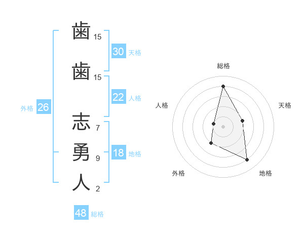 歯歯 志勇人さんを姓名の画数から五運を鑑定