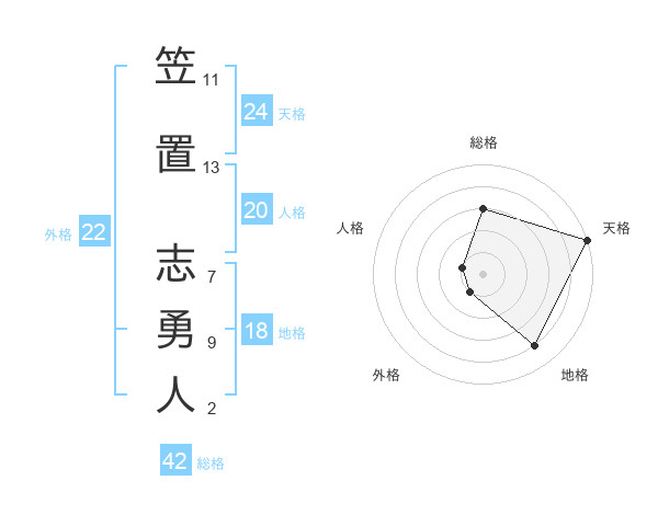 笠置 志勇人さんを姓名の画数から五運を鑑定
