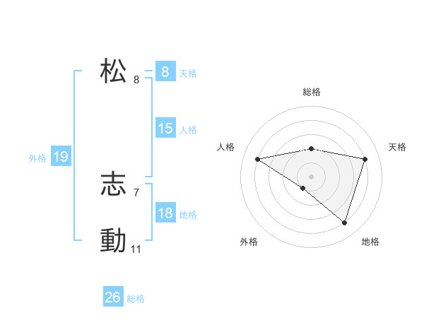 松 志動さんの人格は15画の4点!