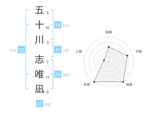 五十川 志唯凪さんの外格は32画の5点!