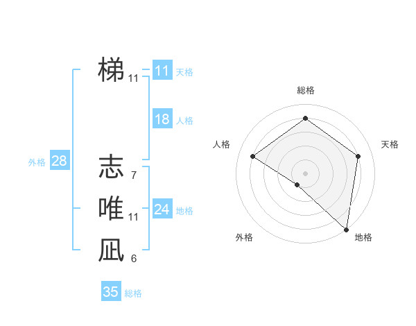 梯 志唯凪さんの総格は35画の4点!