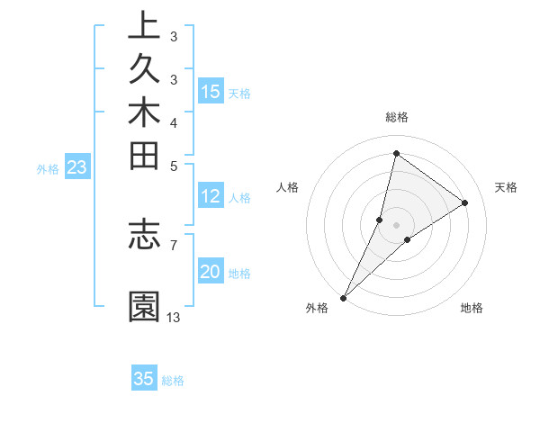上久木田 志園さんを姓名の画数から五運を鑑定