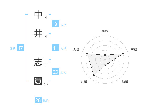 中井 志園さんの総格は28画の1点!