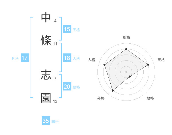 中條 志園さんの外格は17画の4点!