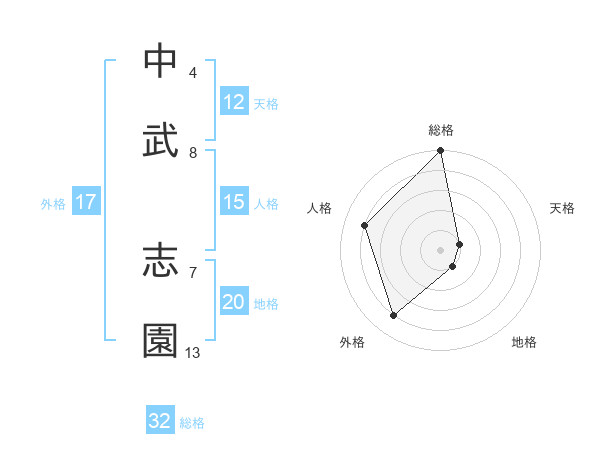 中武 志園さんの総格は32画の5点!
