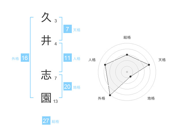 久井 志園さんの総格は27画の3点!