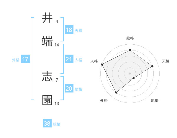 井端 志園さんの総格は38画の4点!