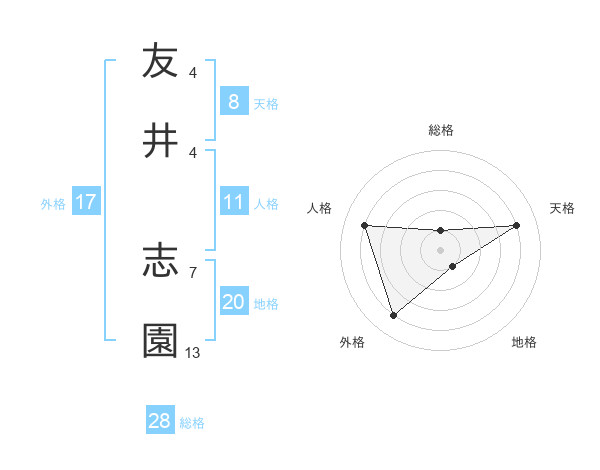 友井 志園さんの天格は8画の4点!