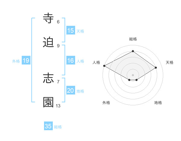 寺迫 志園さんの総格は35画の4点!
