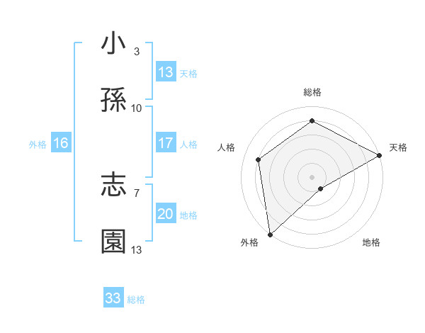 小孫 志園さんの総格は33画の4点!