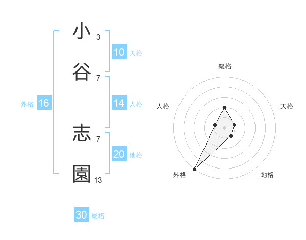 小谷 志園さんの総格は30画の2点!