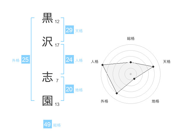 黒沢 志園さんの天格は29画の4点!