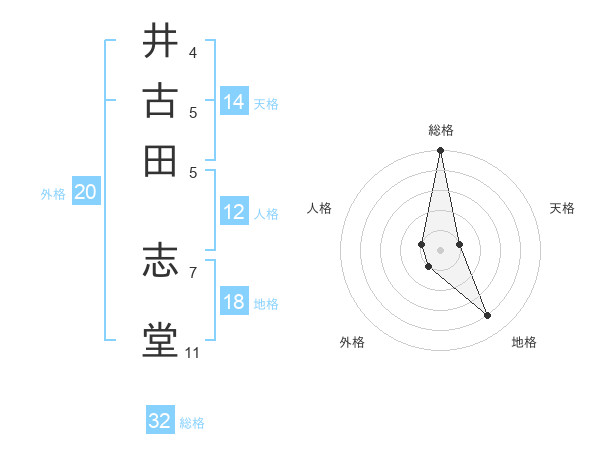 井古田 志堂さんの総格は32画の5点!