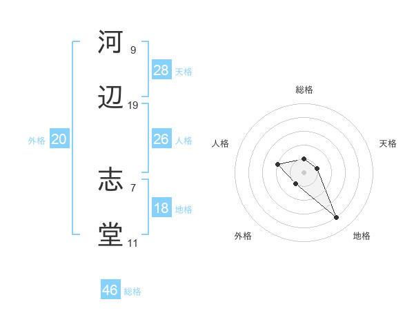 河辺 志堂さんを姓名の画数から五運を鑑定