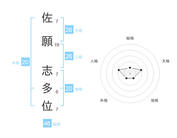 佐願 志多位さんを姓名の画数から五運を鑑定