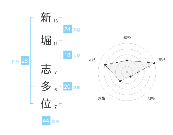 新堀 志多位さんを姓名の画数から五運を鑑定