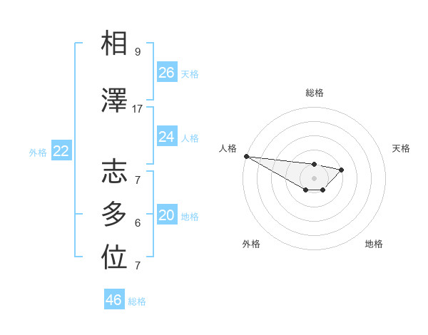 相澤 志多位さんを姓名の画数から五運を鑑定