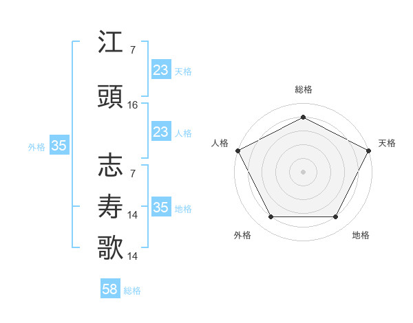 江頭 志寿歌さんの天格は23画の5点!