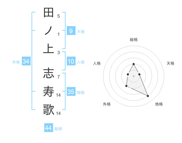 田ノ上 志寿歌さんの総格は44画の2点
