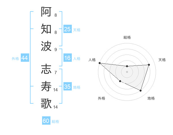 阿知波 志寿歌さんの総格は60画の1点!