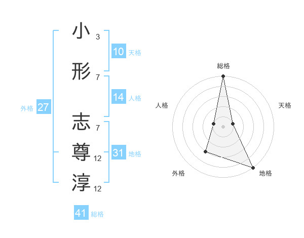 小形 志尊淳さんの地格は31画の5点!