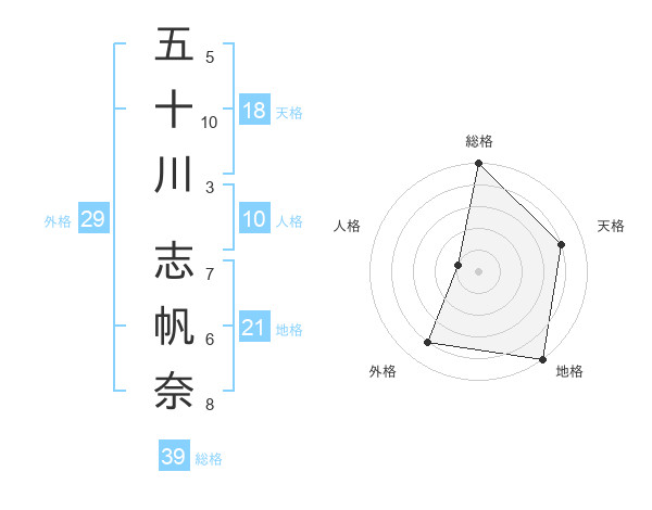 五十川 志帆奈さんを姓名の画数から五運を鑑定