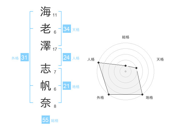海老澤 志帆奈さんの総格は55画の1点!