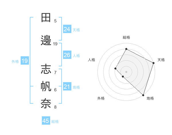田邊 志帆奈さんの天格は24画の5点!