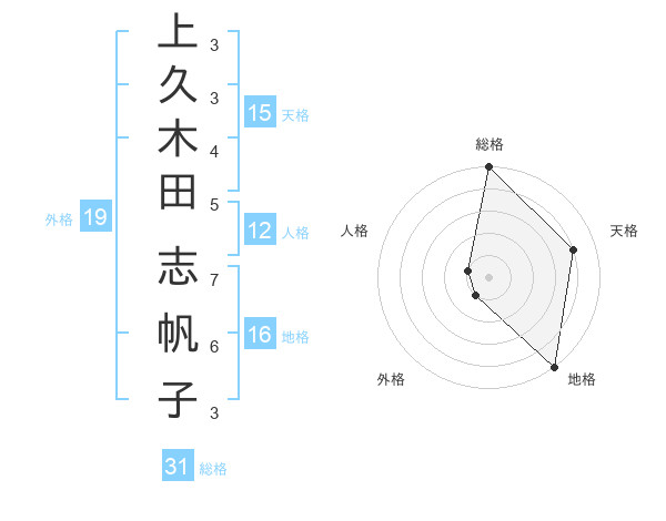 上久木田 志帆子さんの外格は19画の1点!
