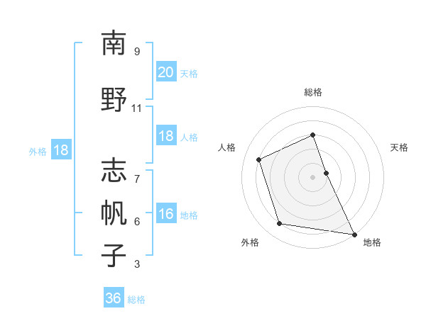 南野 志帆子さんを姓名の画数から五運を鑑定